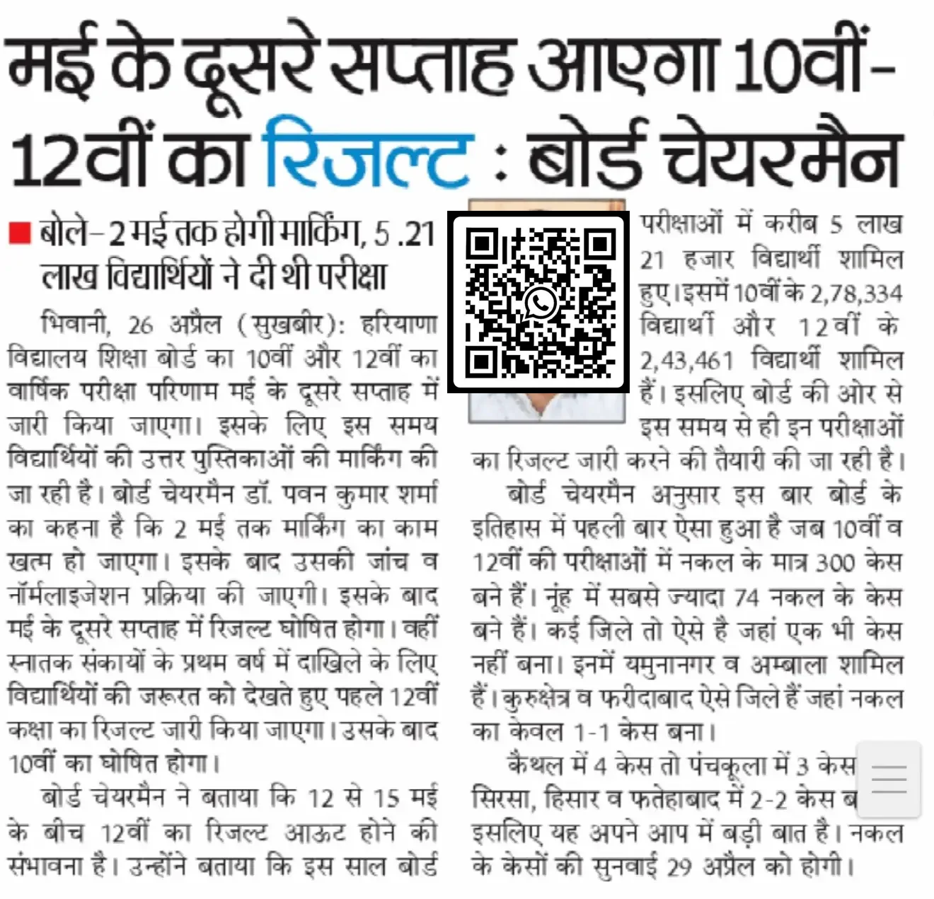 HBSE 12th Result 2026 Date: The Board of School Education Haryana (BSEH), Bhiwani, will release the HBSE 12th Result 2026 in May 2026 (Second Week Expected). As per the latest updates, the board will declare the Class 12th result first, followed by the Class 10th result. Students who appeared in the Haryana Board Exams 2026 can check their results online through the official website.