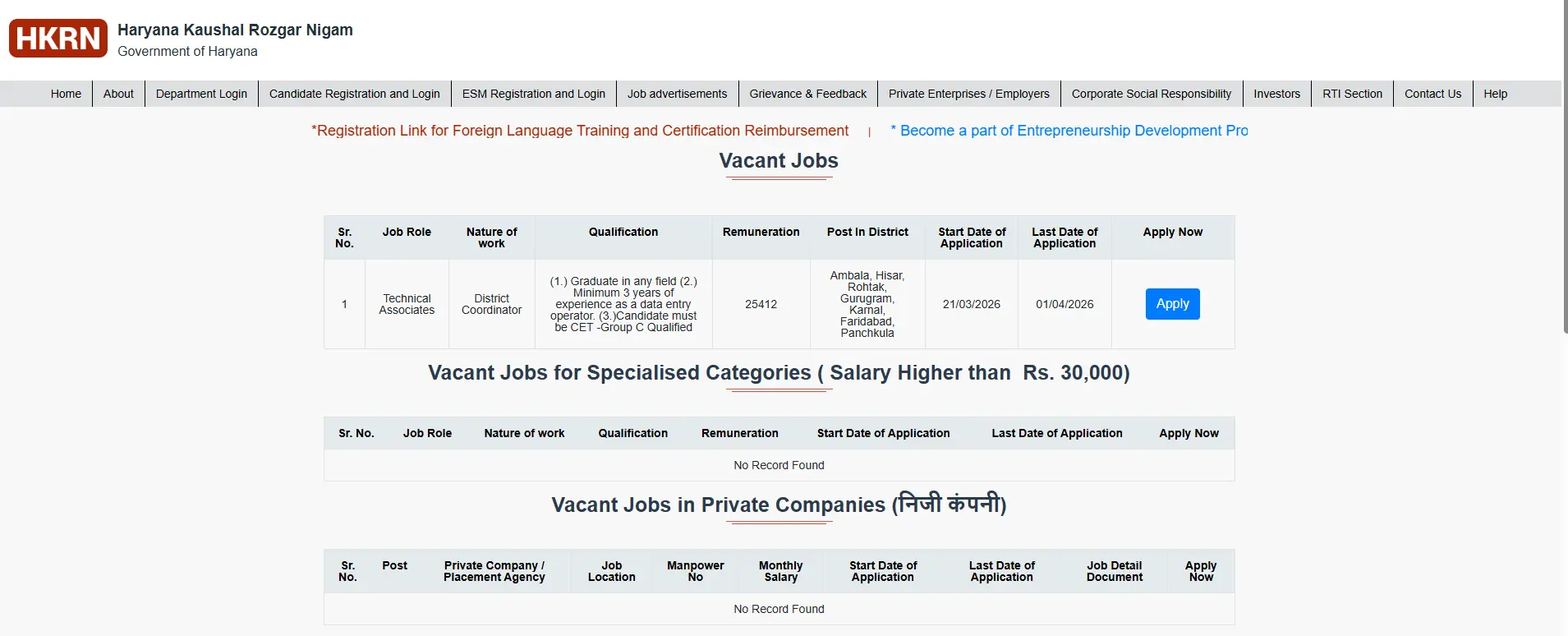 Brief Information: HKRN Technical Associate Vacancy 2026. The Haryana Kaushal Rojgar Nigam (HKRN) has invited online applications for the Technical Associate (District Coordinator) Posts. Interested Candidates can fill out the Online form. For More Jobs Like Haryana‘s Latest Job 2026, Delhi‘s latest Government Job 2026, and Haryana Kaushal Rojgar Nigam Vacancy 2026, please visit Ladolaxmischeme.com regularly. The details of the HKRN Technical Associate Vacancy 2026, including the application form, age limit, qualification, and other relevant information, are provided below.