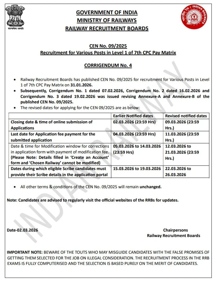 Brief Information: Railway Group D Vacancy 2026. Railway Recruitment Boards (RRBs) have invited online applications for the Manager Posts. Interested Candidates can fill out the Online form. For More Jobs Like Haryana’s Latest Job 2025, Delhi’s latest Government Job 2025, and Haryana Kaushal Rojgar Nigam Vacancy 2025, please visit Ladolaxmischeme.com regularly. The details of the Railway Group D Vacancy 2026, including the application form, age limit, qualification, and other relevant information, are provided below.